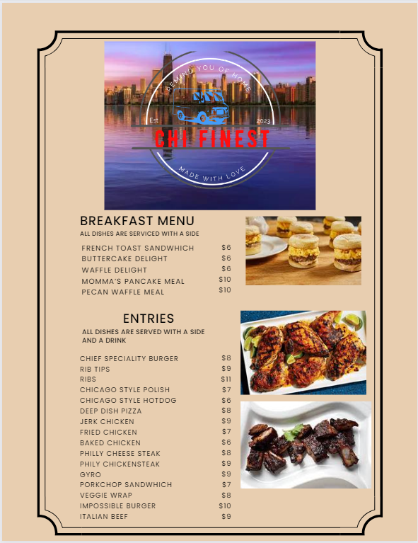 We have been serving irresistible comfort food since 2023. Our mission is to inspire the next wave of innovators through delicious dishes. With a pinch of love and a dash of originality we will assist the entrepreneurs of tomorrow. Our vision is to create a remembrance of home throughout the globe.